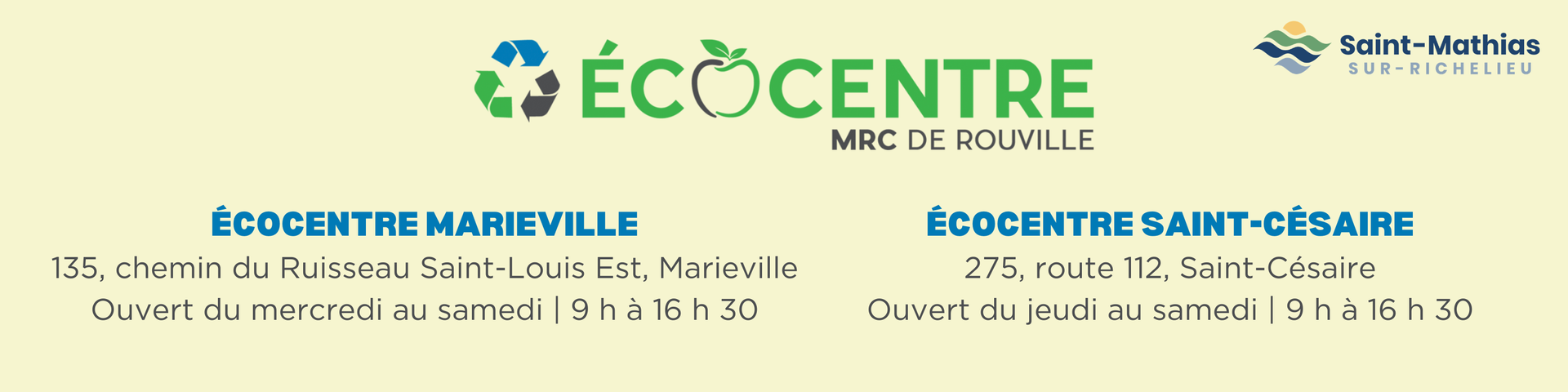 Pour de plus amples renseignements, rendez-vous au mrcrouville.qc.ca/au-service-des-citoyens/environnement/ecocentre.