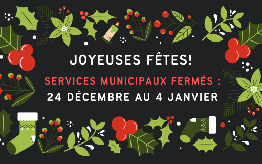 Veuillez noter que les services municipaux seront fermés du 24 décembre au 4 janvier inclusivement.