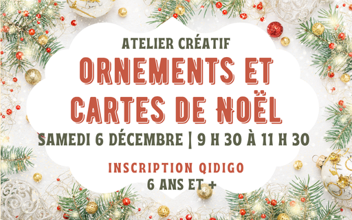 Dans un court délai, noter qu'un atelier créatif d'ornements et cartes de Noël aura lieu le 6 décembre prochain. Inscriptions