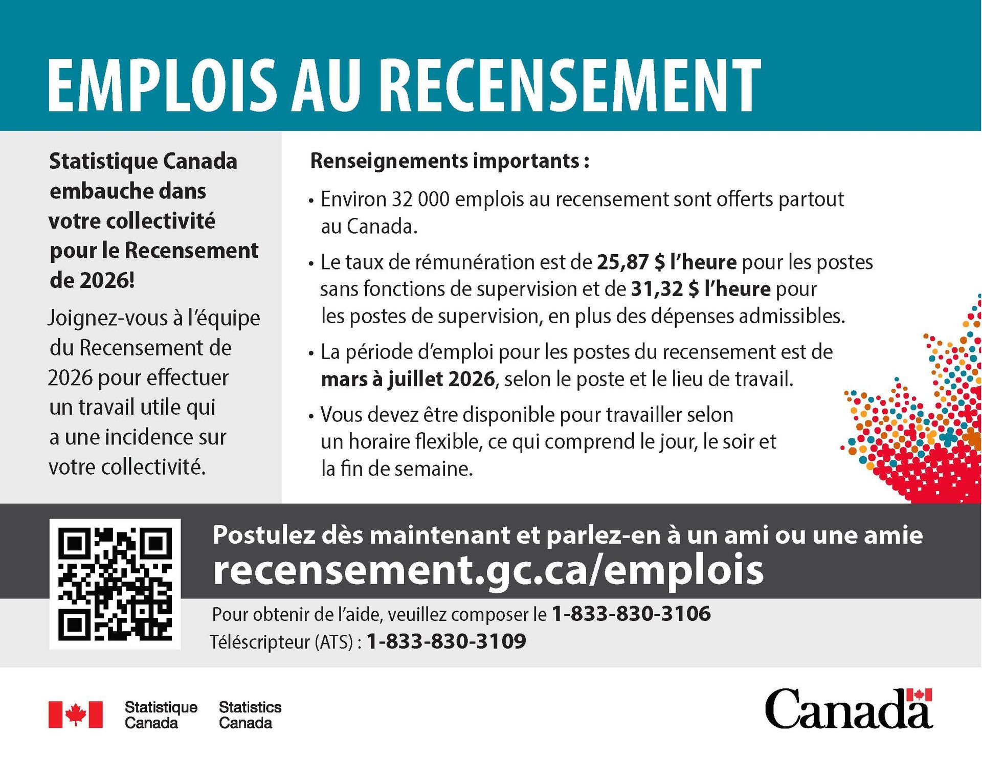 Postulez dès aujourd'hui à recensement.gc.ca/emplois.