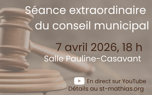 Le conseil municipal tiendra une séance extraordinaire le mardi 7 avril 2026, à 18 h, à la salle Pauline-Casavant (99, rue Lussier).